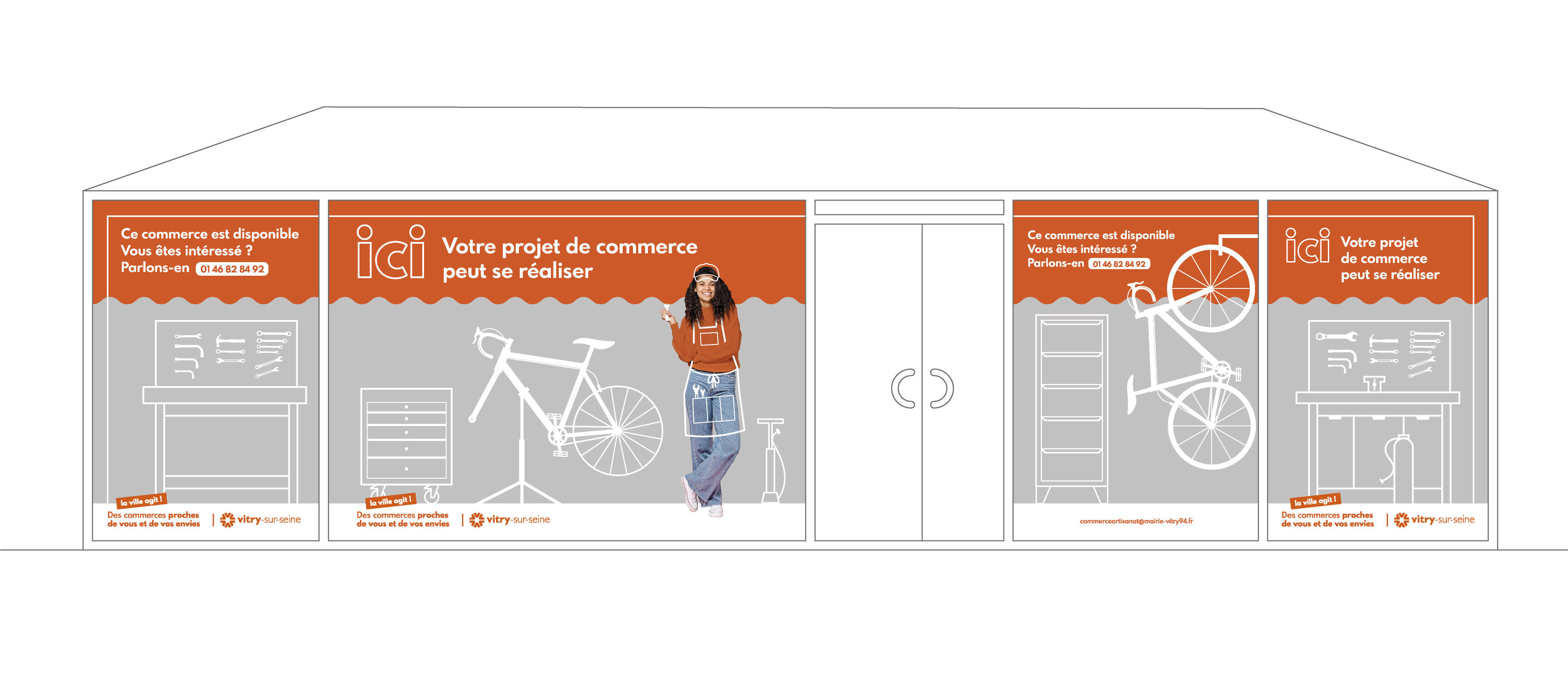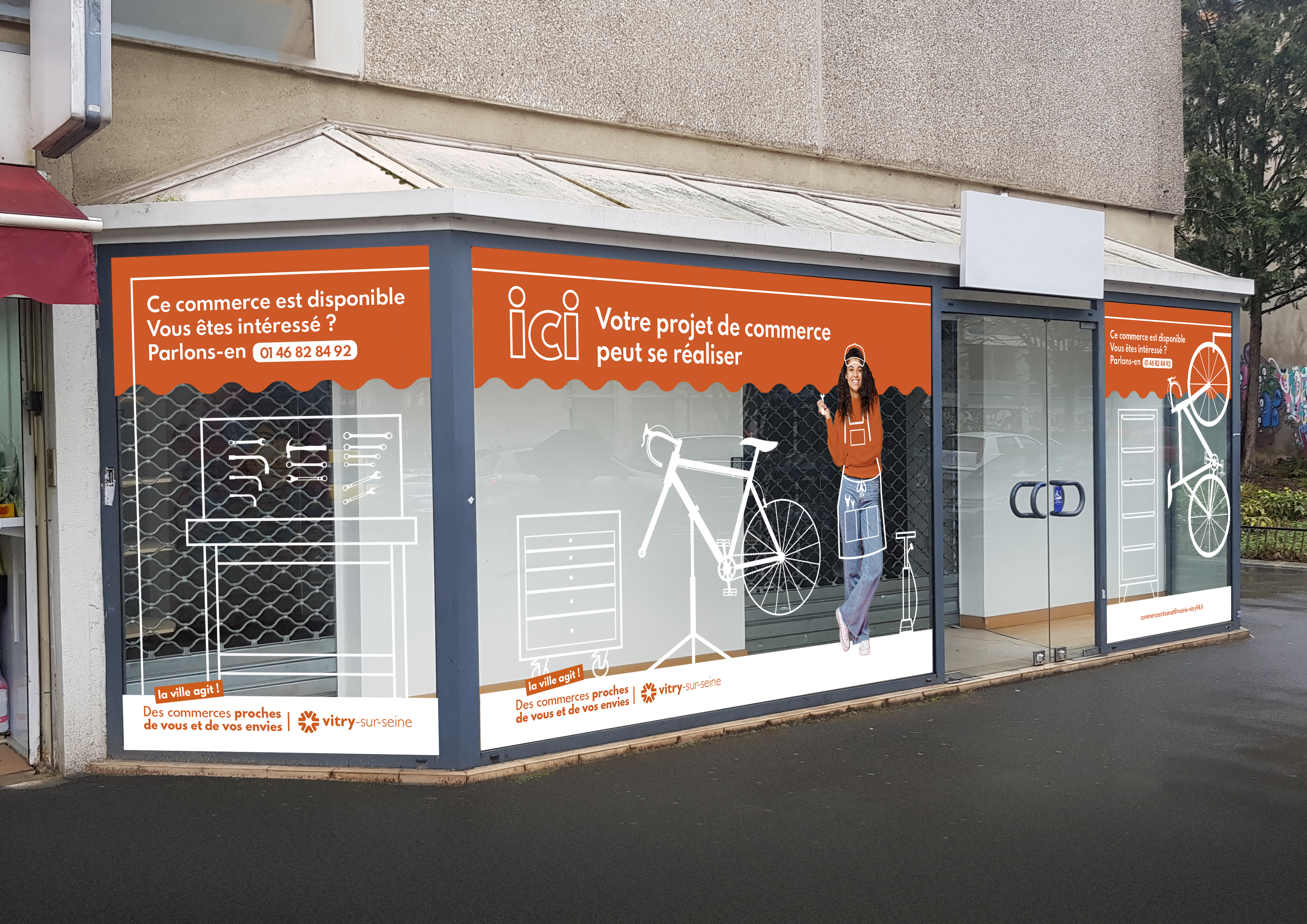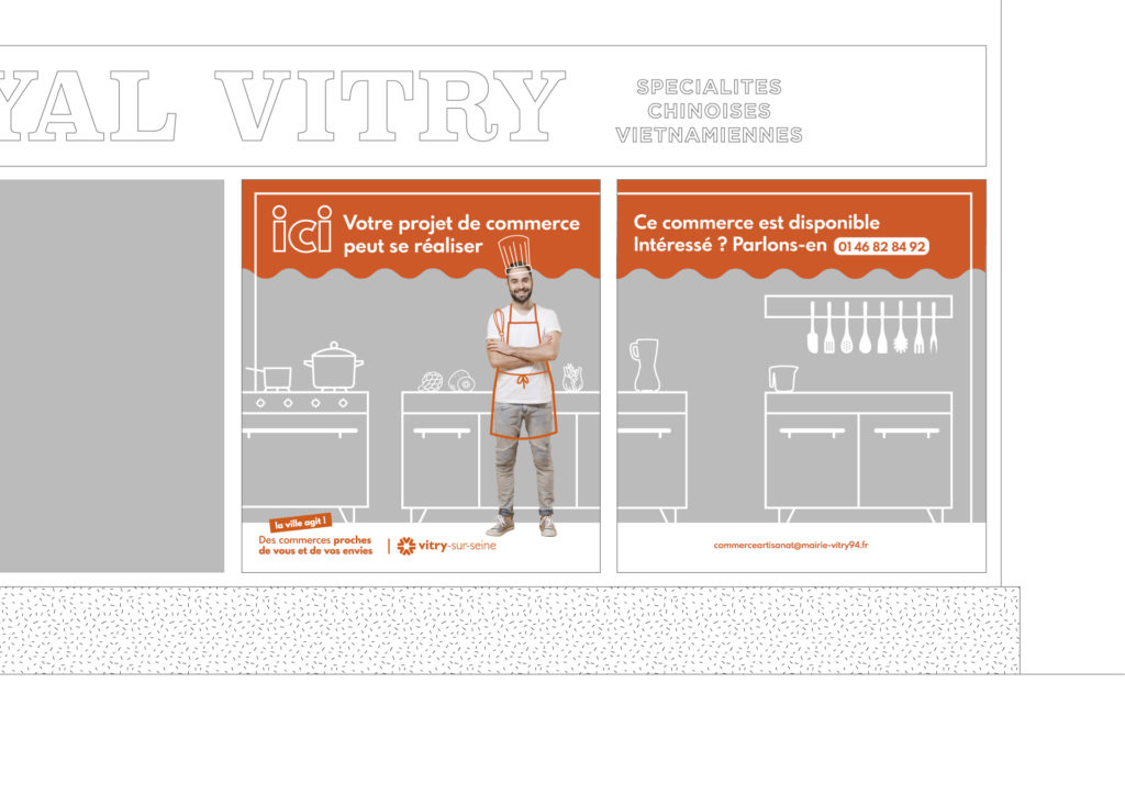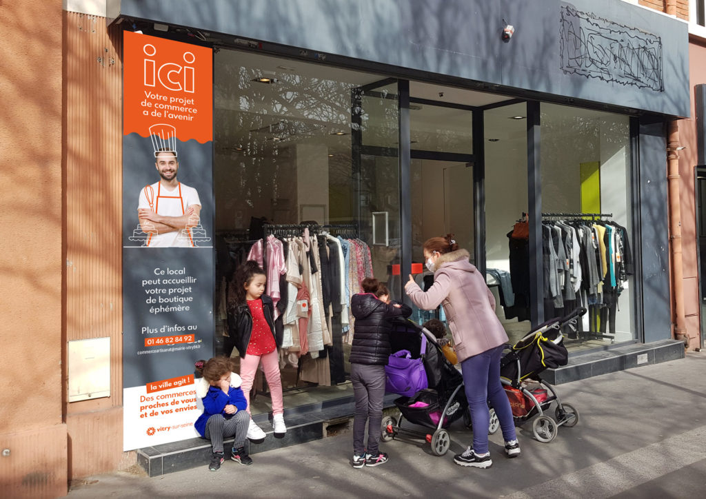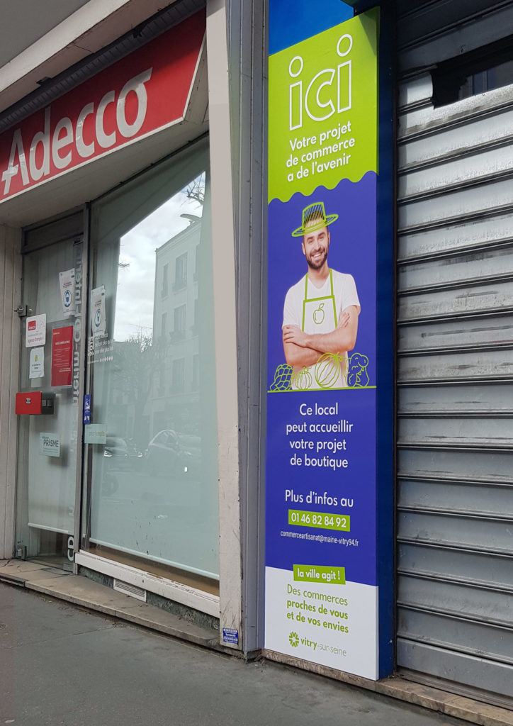 Afin de diversifier l’offre de commerce de proximité, la ville préempte certains commerces qui cessent leur activité. L’ambition est d’aider les porteurs de projet à s’y installer et développer leur boutique. J’ai ainsi créé une campagne de communication graphique sur les commerces informant les entrepreneurs potentiels de la disponibilité des locaux et les invitant à se rapprocher de la collectivité pour bénéficier d’un accompagnement.
