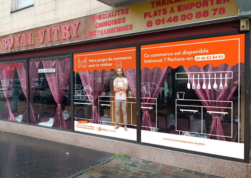 Afin de diversifier l’offre de commerce de proximité, la ville préempte certains commerces qui cessent leur activité. L’ambition est d’aider les porteurs de projet à s’y installer et développer leur boutique. J’ai ainsi créé une campagne de communication graphique sur les commerces informant les entrepreneurs potentiels de la disponibilité des locaux et les invitant à se rapprocher de la collectivité pour bénéficier d’un accompagnement.
